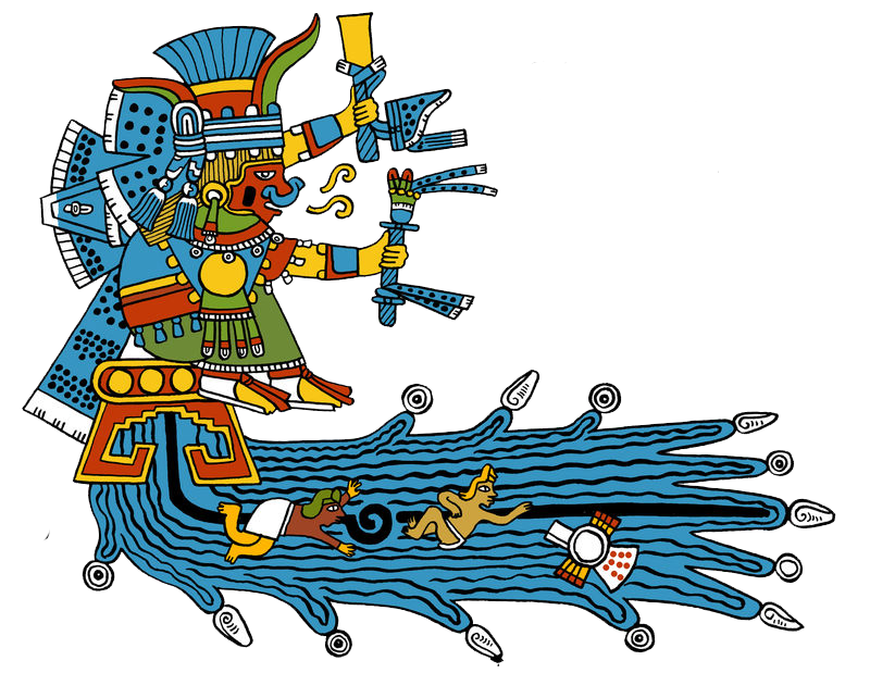 When seeds are germinating, Chalchiuhtlique transforms into Atlatonan, Our Mother who Lights up in the Waters. When she takes on the form of mists and vapors, she’s Ayauhteotl, the Fog Goddess. In this aspect she connects with the dawn, night, fame and vanity.